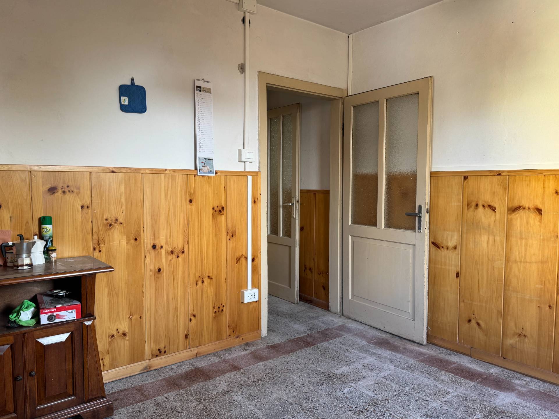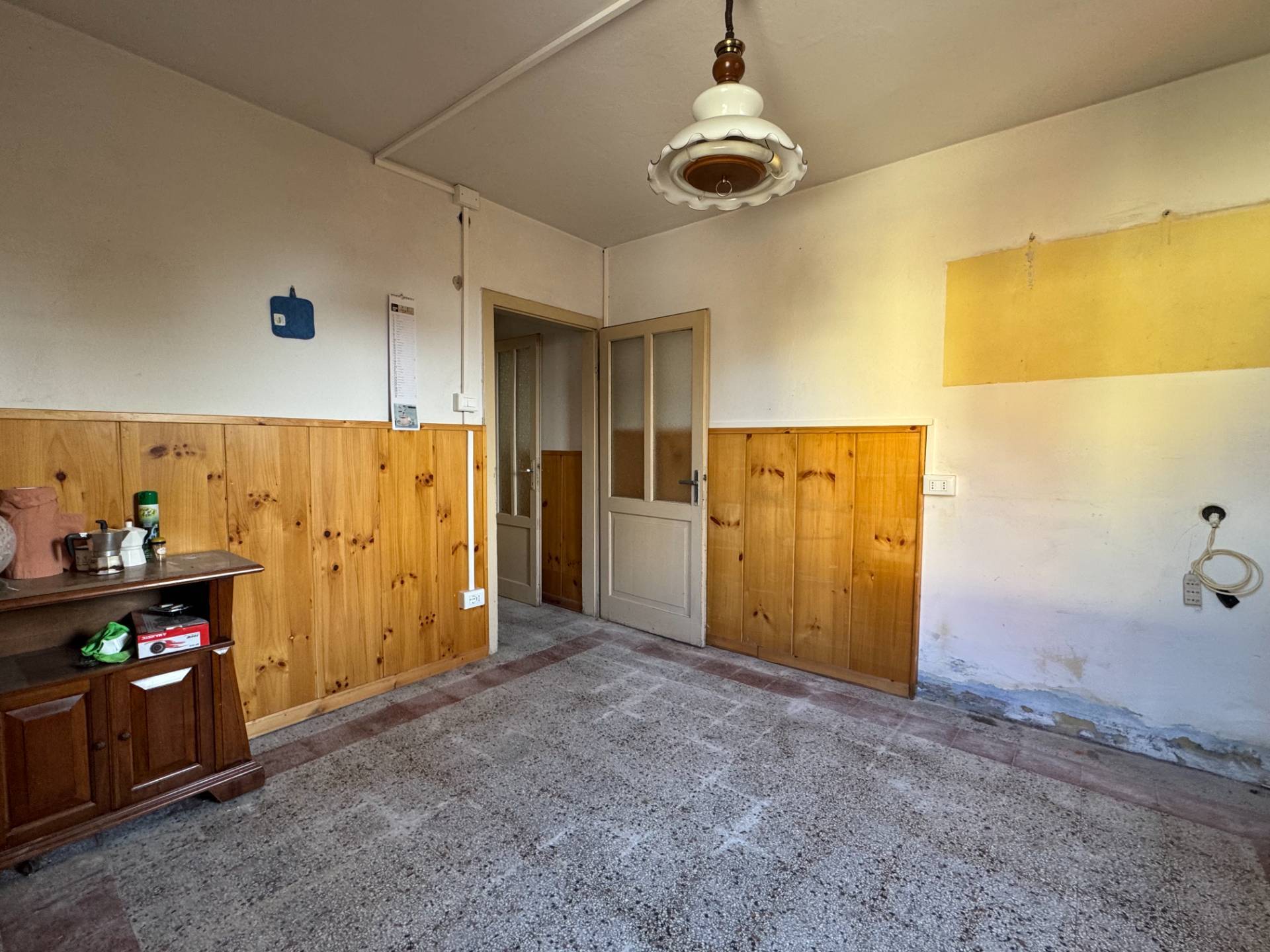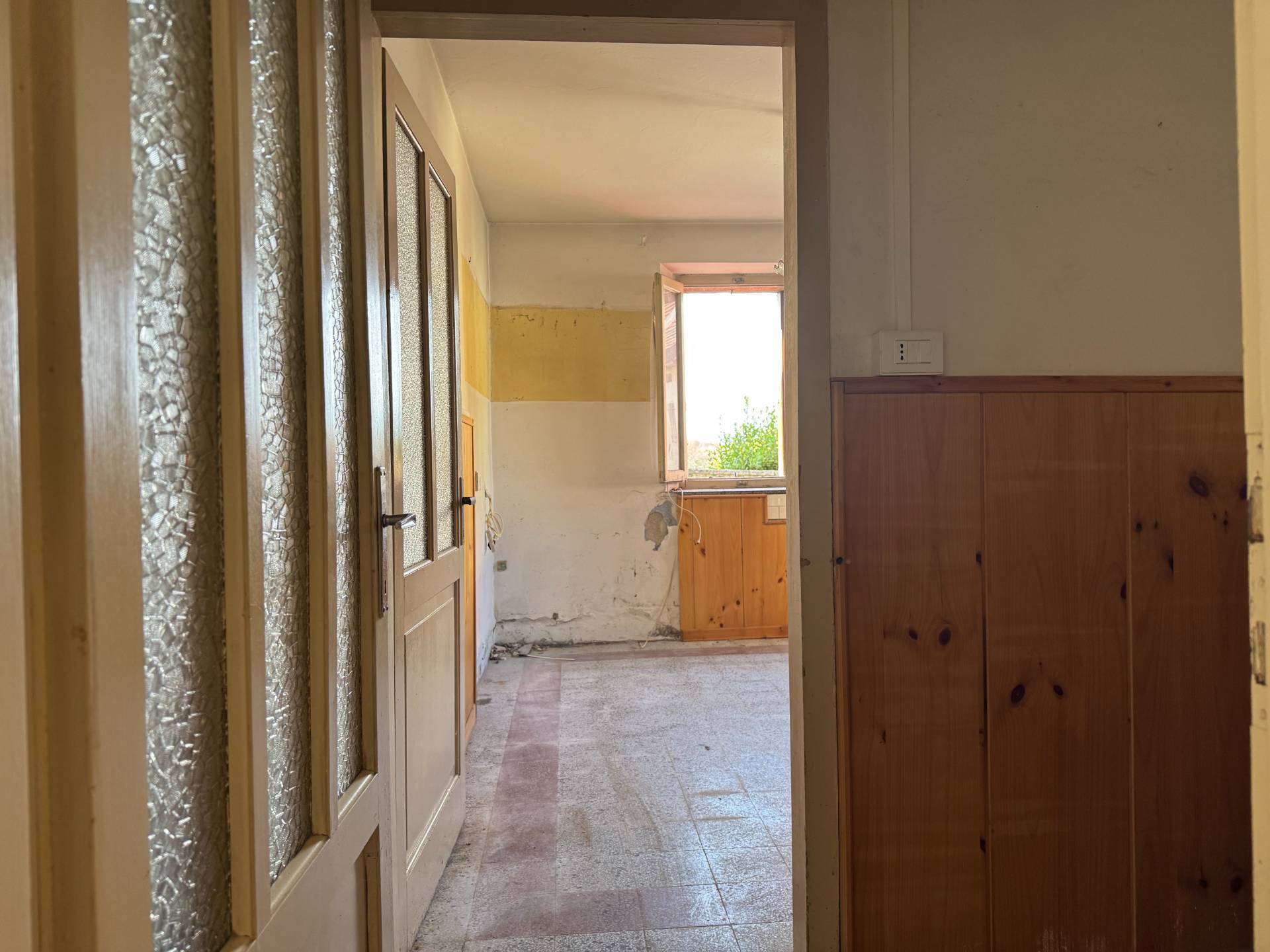PIANO TERRA con ingresso su ampio disimpegno, vano cucina-soggiorno, bagno e cantina;